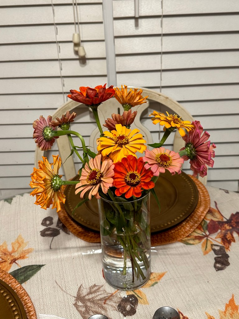 October 1st has been the beginning of cutting Zinnias to adorn my table, I had never cut them before, but have made over four cuttings since my discovery. This has been a game changer for me in planting the seeds but will definitely engage the potted plants as well next year to have a wonderful variety of splendor to enjoy.