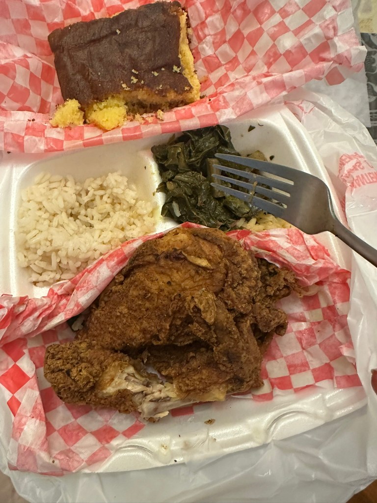 I began my day on Saturday morning by supporting the Missions, “Dress for Success” and got to check out some nice high-end clothing and shoes. Proceeds help support ladies, build their careers and help them achieve financial stability. Since I was so close to my sister’s town, I called to ensure that she would be home and she welcomed the visit! We chatted for a while when I arrived then she stressed that she was getting hungry, so was I. We decided to go to Lee’s Kitchen, a Jamaican & Southern Cuisine style Restaurant that I had never visited. The only drawback I felt was that you could not sit down to eat your food but had to take it to go!